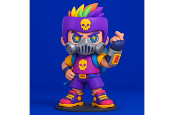 Finish: Metallic Violet Armor + Neon Flame Hair Accents